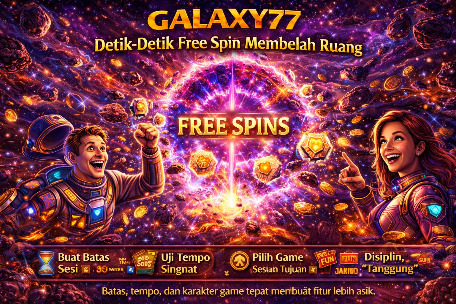 “Detik-detik free spin membelah ruang” di GALAXY77 adalah metafora yang pas untuk menggambarkan perubahan tempo dan mekanik saat bonus aktif. Tapi kunci pengalaman yang enak bukan terletak pada mengejar kepastian, melainkan memahami struktur fitur, membaca ritme game, dan menjaga kontrol sesi. Free spin bisa jadi momen paling seru—selama kamu tetap memegang batas waktu dan modal, serta tidak mengubah hiburan menjadi tekanan.